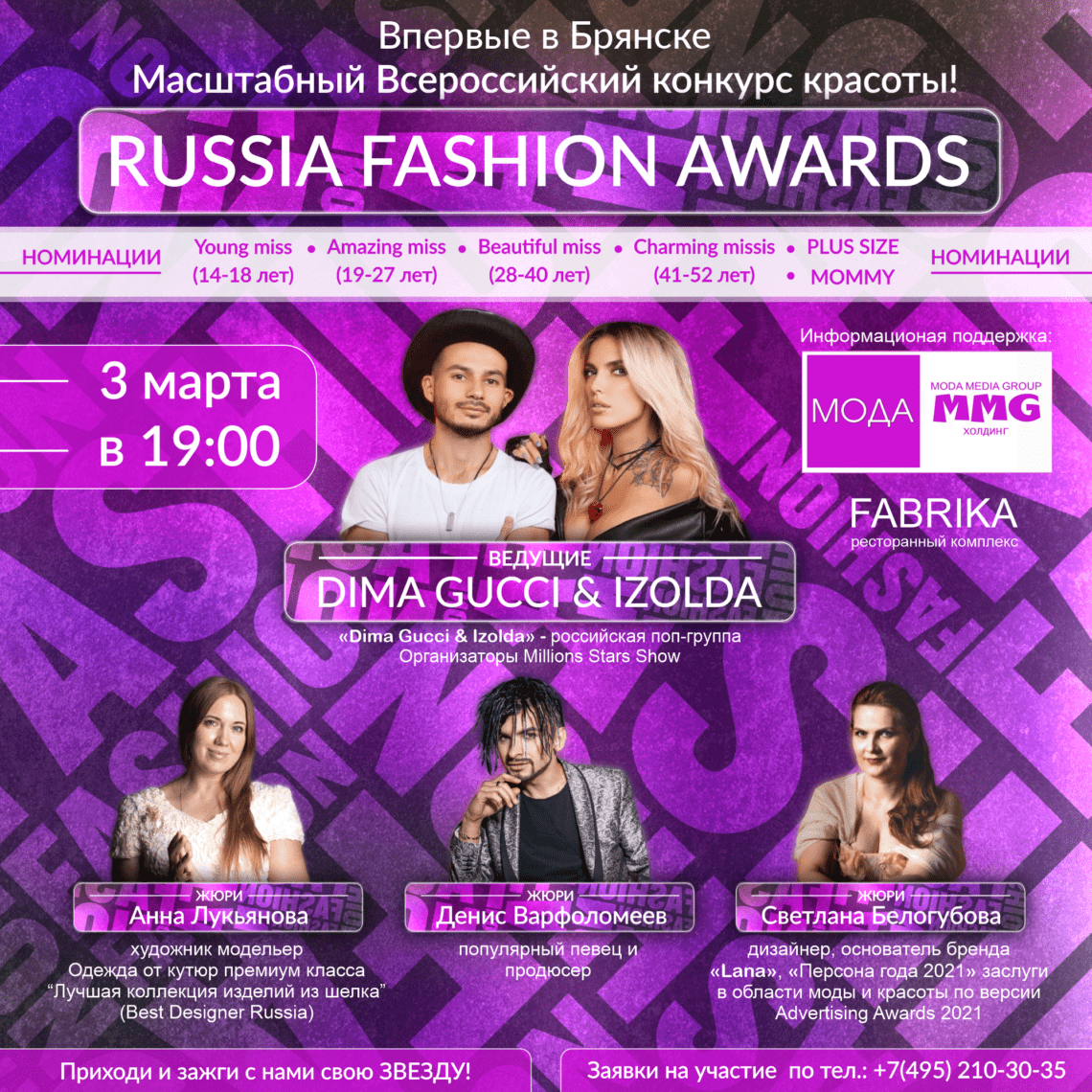 Друзья, мы с @dima_gucci рады представить новый весенний проект стиля и красоты Russia Fashion Awards, который пройдёт в славном городе Брянск в самой модной локации @fabrika.bryansk